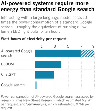Segundo a Agência Internacional de Energia, entre 2022 e 2026 o consumo elétrico global de data centers dobrará, sendo que a IA será responsável por cerca de 90% desse crescimento. Além disso, a integração de IA em serviços cotidianos já gera impacto: a simples incorporação de respostas generativas no motor de busca do Google multiplicou por dez o número de operações de ponto flutuante por consulta, transformando a busca em um processo ativo de inferência computacional.